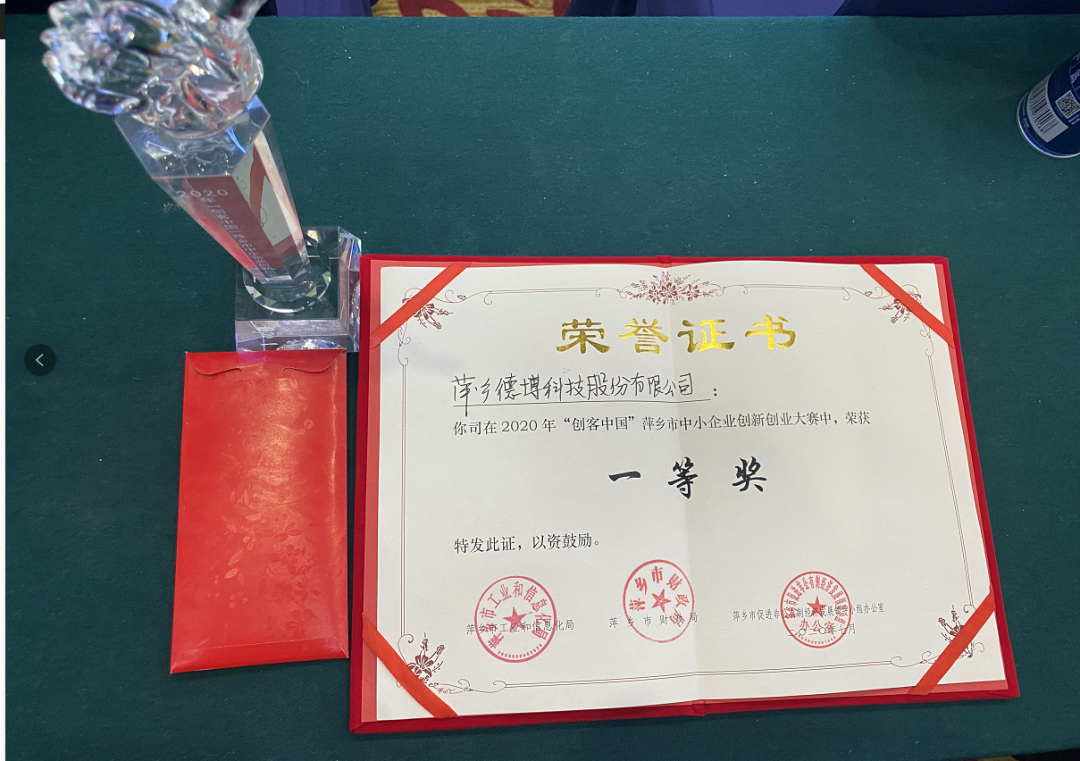 德博科技在2020年“創客中國” 萍鄉市中小企業創新創業大賽中榮獲一等獎