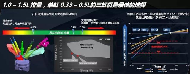 經過技術驗證(zheng),對于主流家用轎車所使用的(de)(de)1.0-1.5L排(pai)量發(fa)動機而言,選擇單缸排(pai)量0.33-0.5L是上述(shu)命題的(de)(de)最優解。過小(xiao)的(de)(de)單缸排(pai)量會增大熱損失,導(dao)致發(fa)動機熱效率(lv)明顯降低(di);過大的(de)(de)單缸排(pai)量則(ze)會使火焰傳播(bo)距離(li)加(jia)長(chang),容易引發(fa)爆震,同樣使發(fa)動機熱效率(lv)下降。