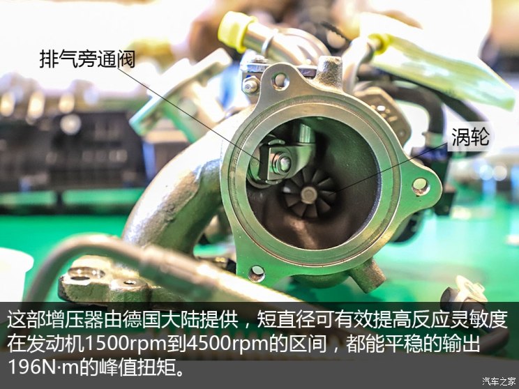 動力輸出的背后,免不了渦輪增壓技術的支持。這臺發動機采用了如今主流的渦輪增壓 缸內直噴的解決方案,由于渦輪是由發動機的廢氣驅動,因此不可避免地會存在滯后性。而對于這樣一臺小排量發動機來說,如果渦輪不能盡快介入,那么它的性能將等同于一臺1.0L自然吸氣發動機,這對于駕駛員來說無疑不是什么好消息。為此,東風的解決辦法是采用了一顆小慣量渦輪,這樣它啟動起來就不會太困難,從而提升了發動機的響應速度。