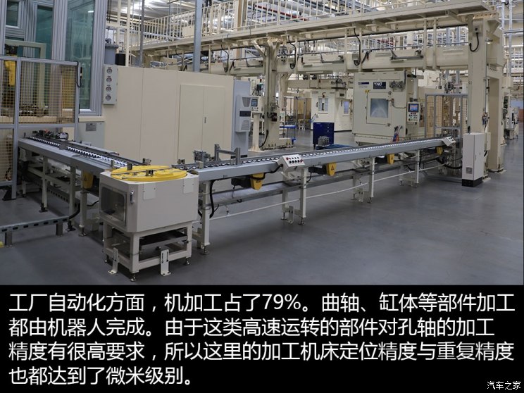 目前1.0T發動機在東風的技術中心園區進行生產,整個生產車間具有比較高的自動化率。其中裝備了大量機械手和AGV自動小車,在提高生產效率的同時也能進行更精準的生產管控。