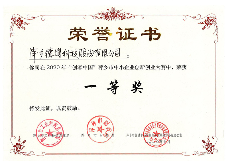 “創客中國”萍鄉中小企業創新大賽一等獎