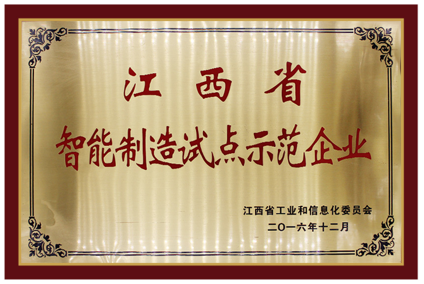 榮獲江西省工業和信息化委員會頒發的江西省智能制造試點示范企業