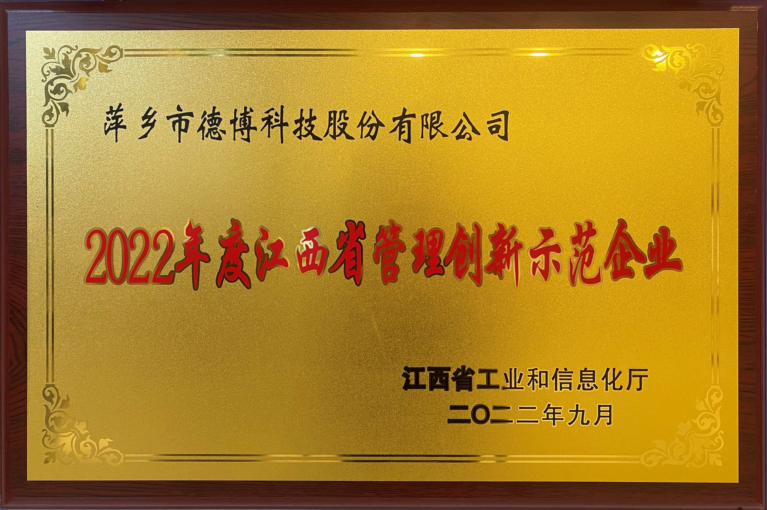 2022年9月經江西省工業和信息化廳認定為“2022年度江西省管理創新示范企業”