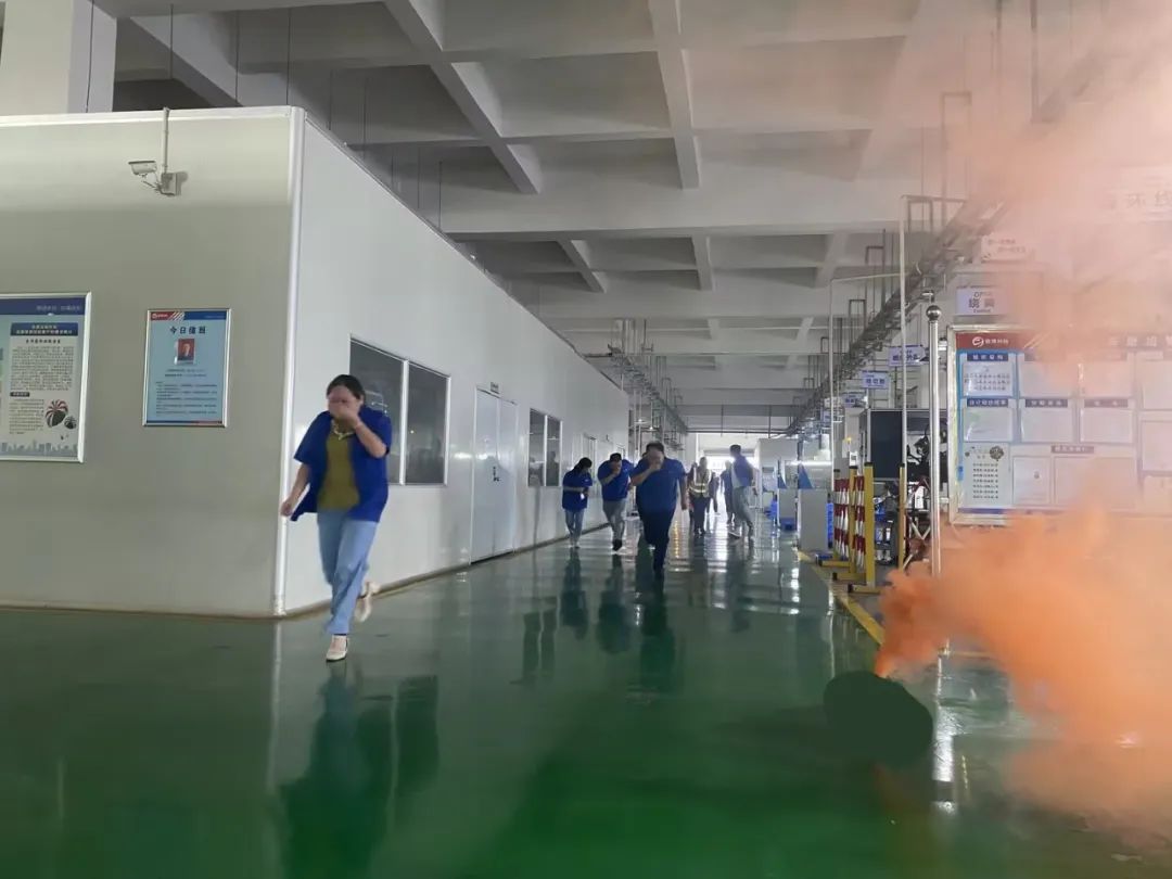 為達到實戰演練效果,提高組織人員疏散逃生能力,公司所有部門竭力配合。當警報在廠區內響起,各區域安全負責人立即組織本區域員工井然有序地按照規定疏散路線,迅速撤離了現場,到達指定地點。