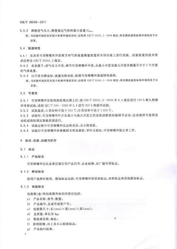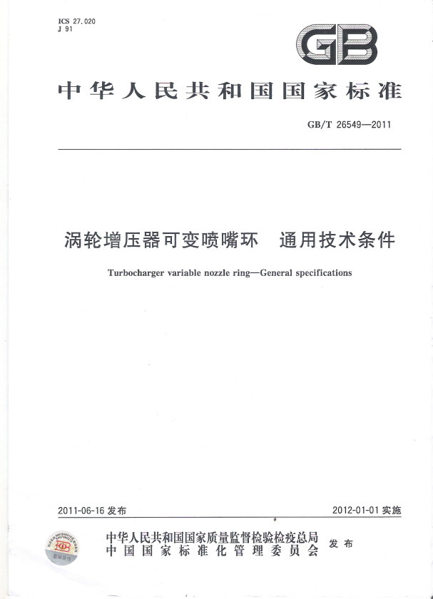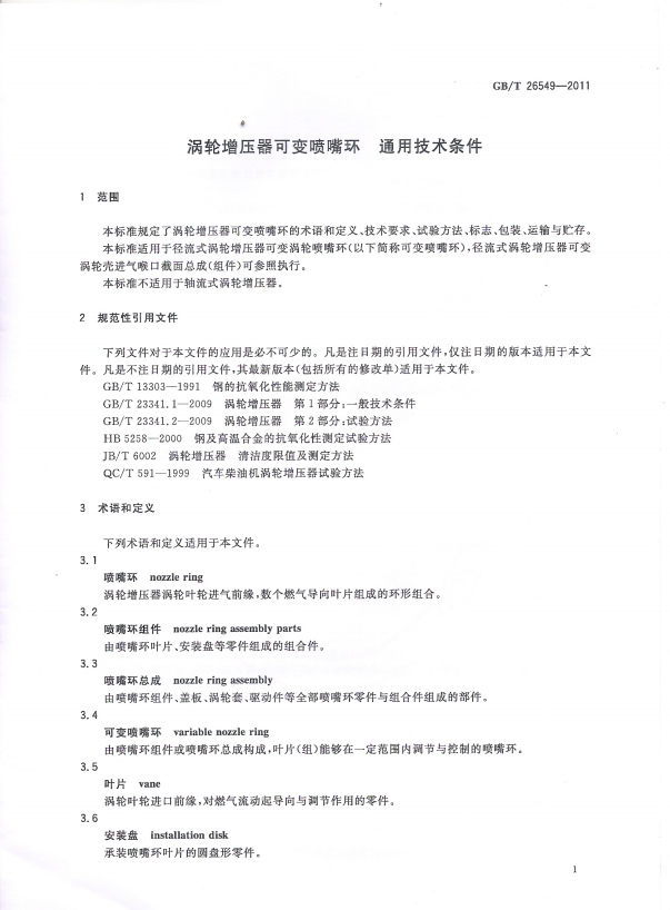 渦輪增壓器可變噴嘴環 通用技術條件