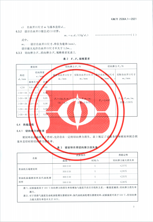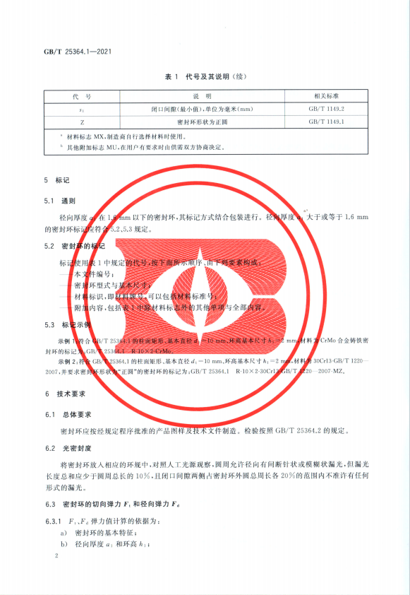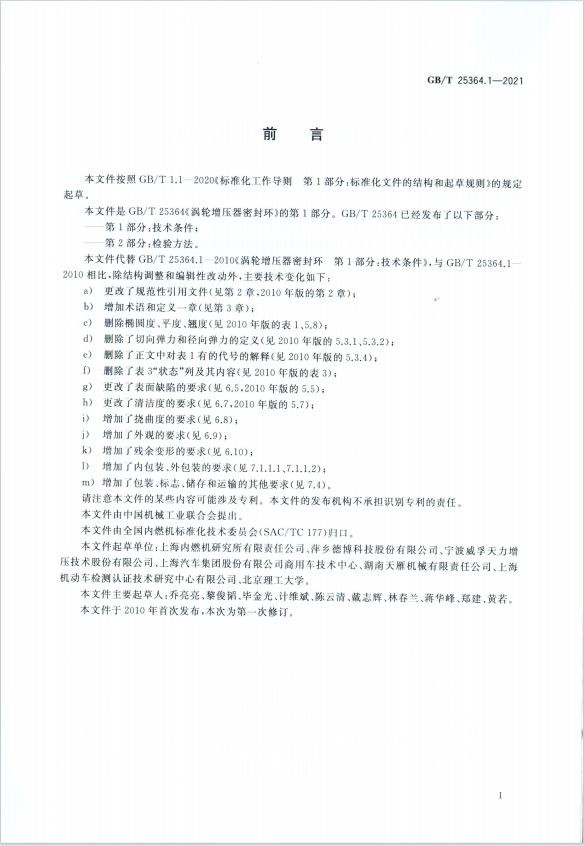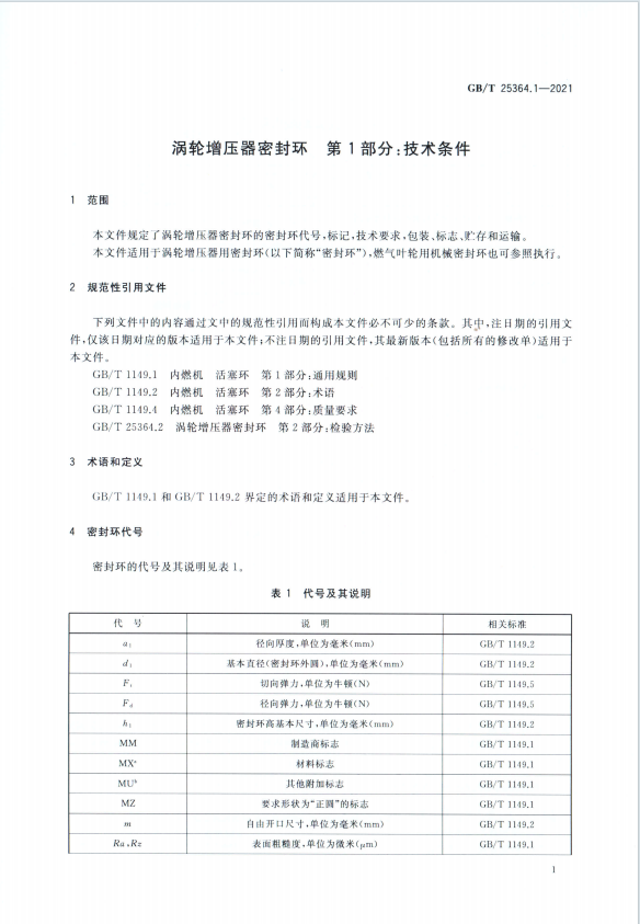 渦輪增壓器密封環 第1部分 技術標準